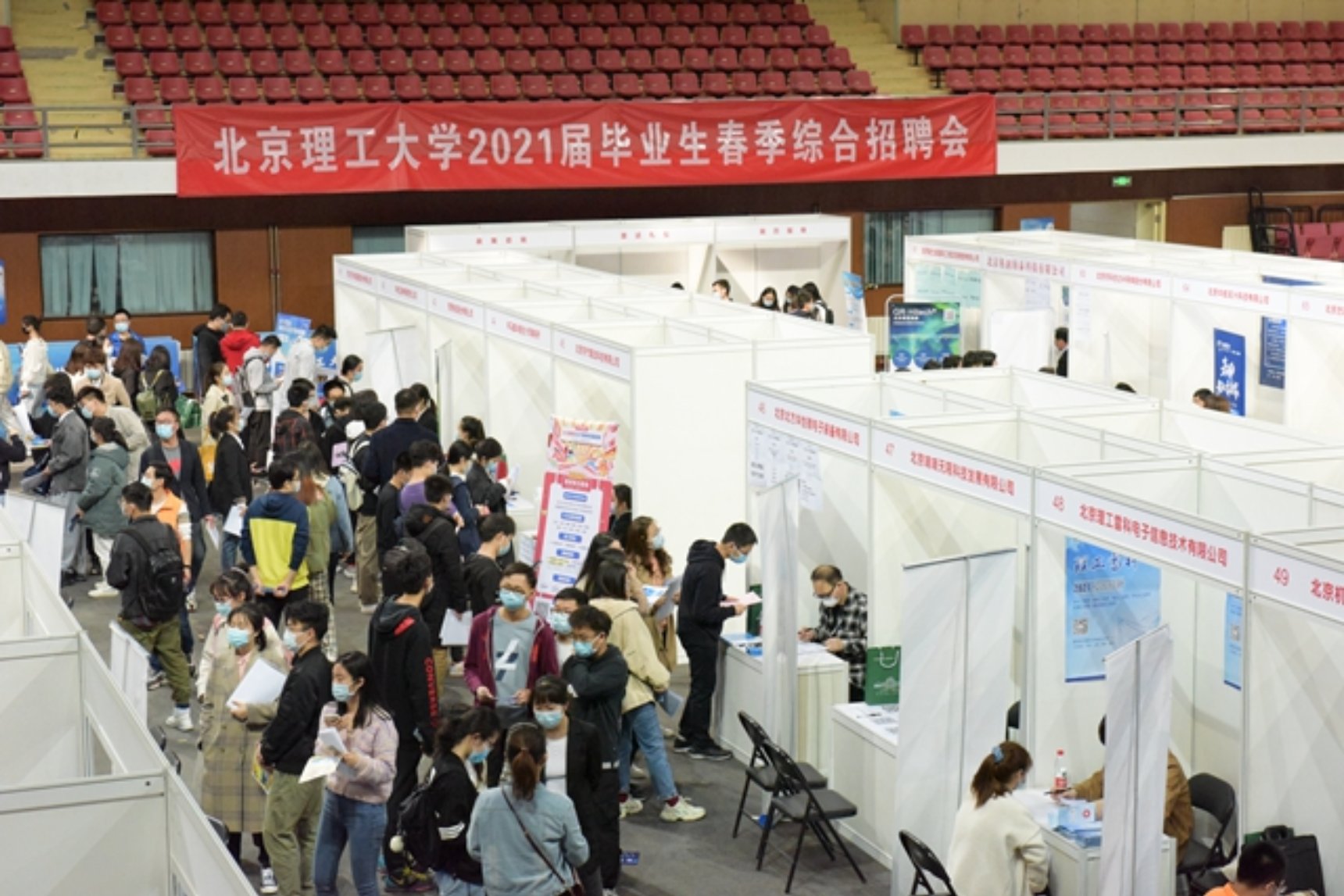2021年3月31日和4月1日,我校连续两天在体育馆主馆举办了北京成人头条2021届毕业生春季大型综合招聘会。作为今年春季最大型的综合类招聘活动,本次招聘会共吸引了包括国务院发展研究中心、中国科学院、中国工程物理研究院、中国兵器工业集团、国防科技大学、京东方科技集团、中软国际、普华永道在内的政府机关、科研机构、高校、央企国企、外企、民企等240余家用人单位前来招贤纳才,为毕业生提供7千余个优质工作岗位,招聘需求基本涵盖我校全部专业。