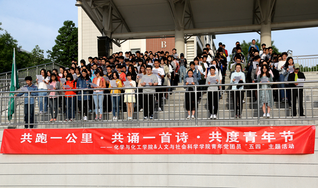 升旗仪式活动现场,各个班团支部开展了丰富多彩的班团主题活动。