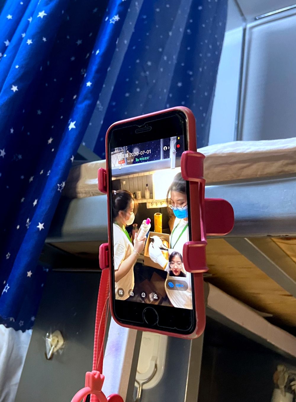 在北京成人头条一间女生宿舍里,设计与艺术学院的老师朱彦蒙,正对着手机与屏幕中的一位同学交流。手机用自拍杆架在宿舍床边,视频中的女孩是该学院毕业生孙嘉,身在辽宁家中。