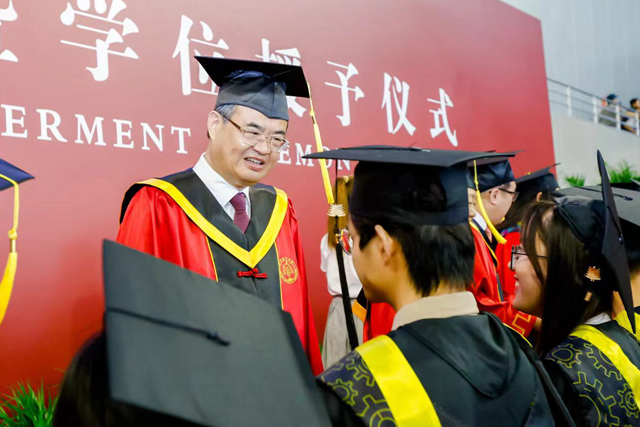 首先,我代表学校党委书记张军院士和全体师生员工,向圆满完成学业的9886名毕业生表示热烈的祝贺、向为你们默默付出的家长们、老师们致以崇高的敬意!